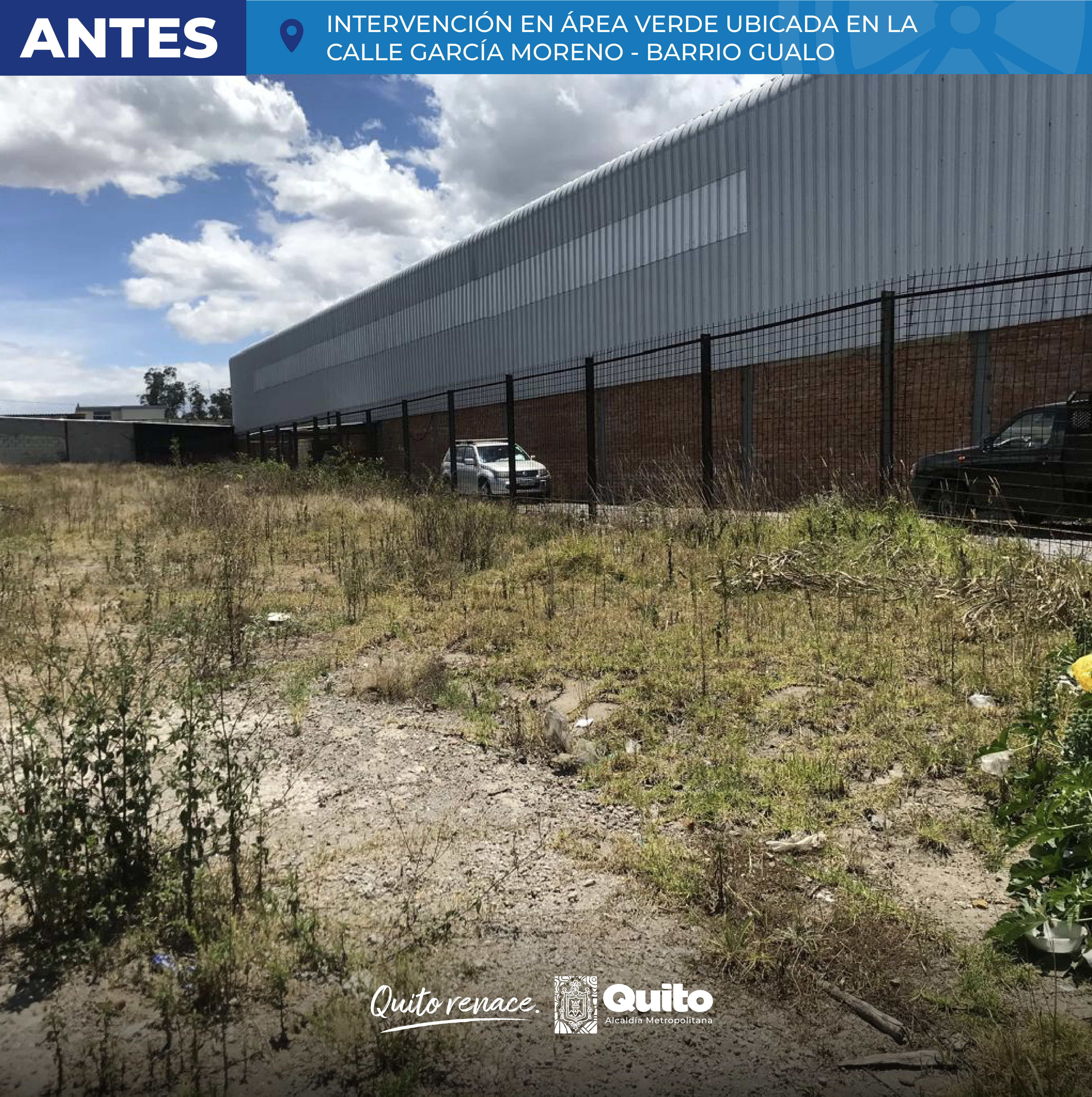 INTERVENCIÓN EN ÁREA VERDE UBICADA EN LA CALLE GARCÍA MORENO, BARRIO GUALO, PARROQUIA LLANO CHICO